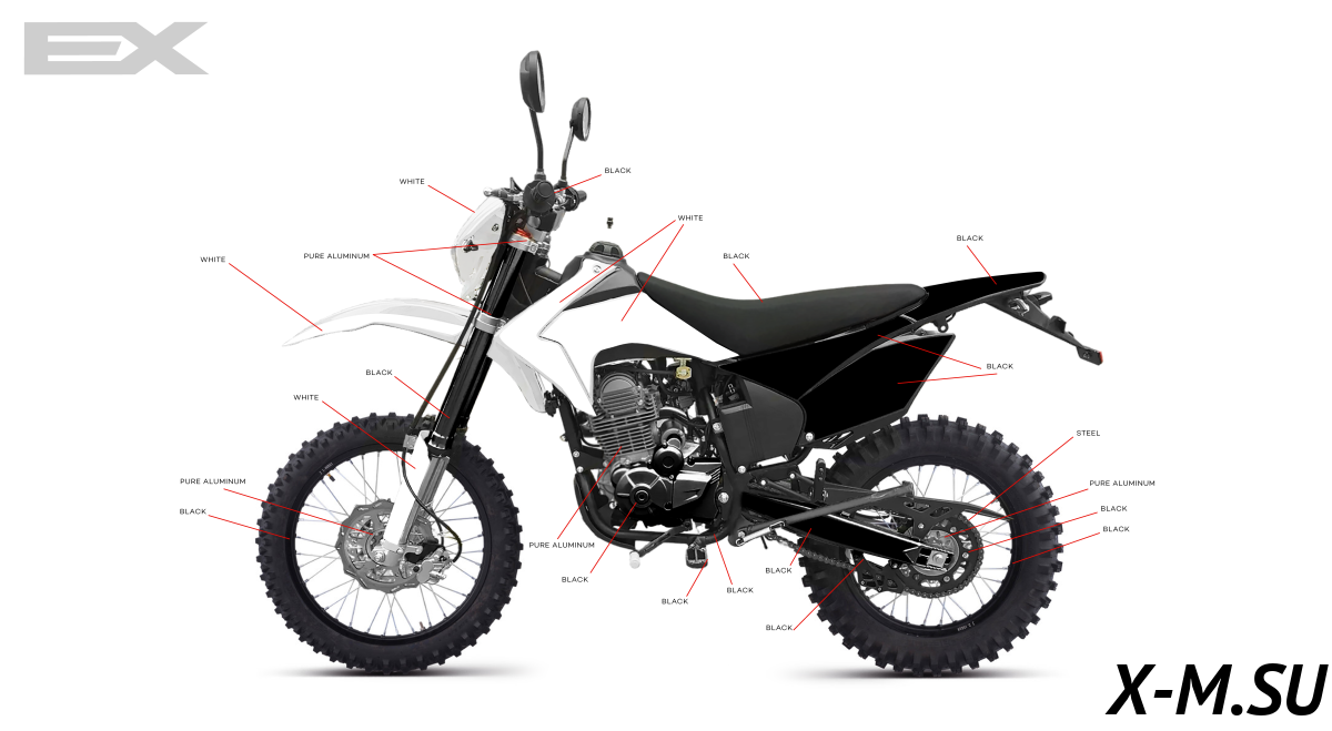 EX-MOTO – это продукт, разработанный командой профессиональных мотоциклистов, участвующих в соревнованиях по всему миру! Каждая мотоцикл идеально сочетает мощность и вес в своем классе. EX-MOTO работает с признанными производителями комплектующих, такими как KKE, ANJIE, CNC и Unison, гарантируя 100% качество своей продукции! Убедитесь в этом сами!